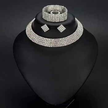 T073A Luxury Dubai 4PCS Conjunto nupcial chapado en oro Collar de cobre Pendientes Anillo Pulsera con circón para boda de mujer